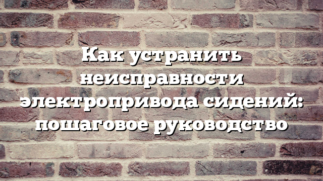 Система электропривода сидений давно стала неотъемлемой частью современных автомобилей. Удобство и комфорт, которые она предоставляет, трудно переоценить. Но, как и любая техническая система, электропривод сидений со временем может выйти из строя или начать работать с перебоями. Если вы заметили, что сиденье не двигается, скрипит, медленно реагирует на команды или вовсе не реагирует на кнопки управления, не стоит сразу паниковать и бежать в сервис. Во многих случаях неисправности можно выявить и устранить самостоятельно. В этой статье мы подробно расскажем, как диагностировать и исправить наиболее распространённые проблемы электропривода сидений.